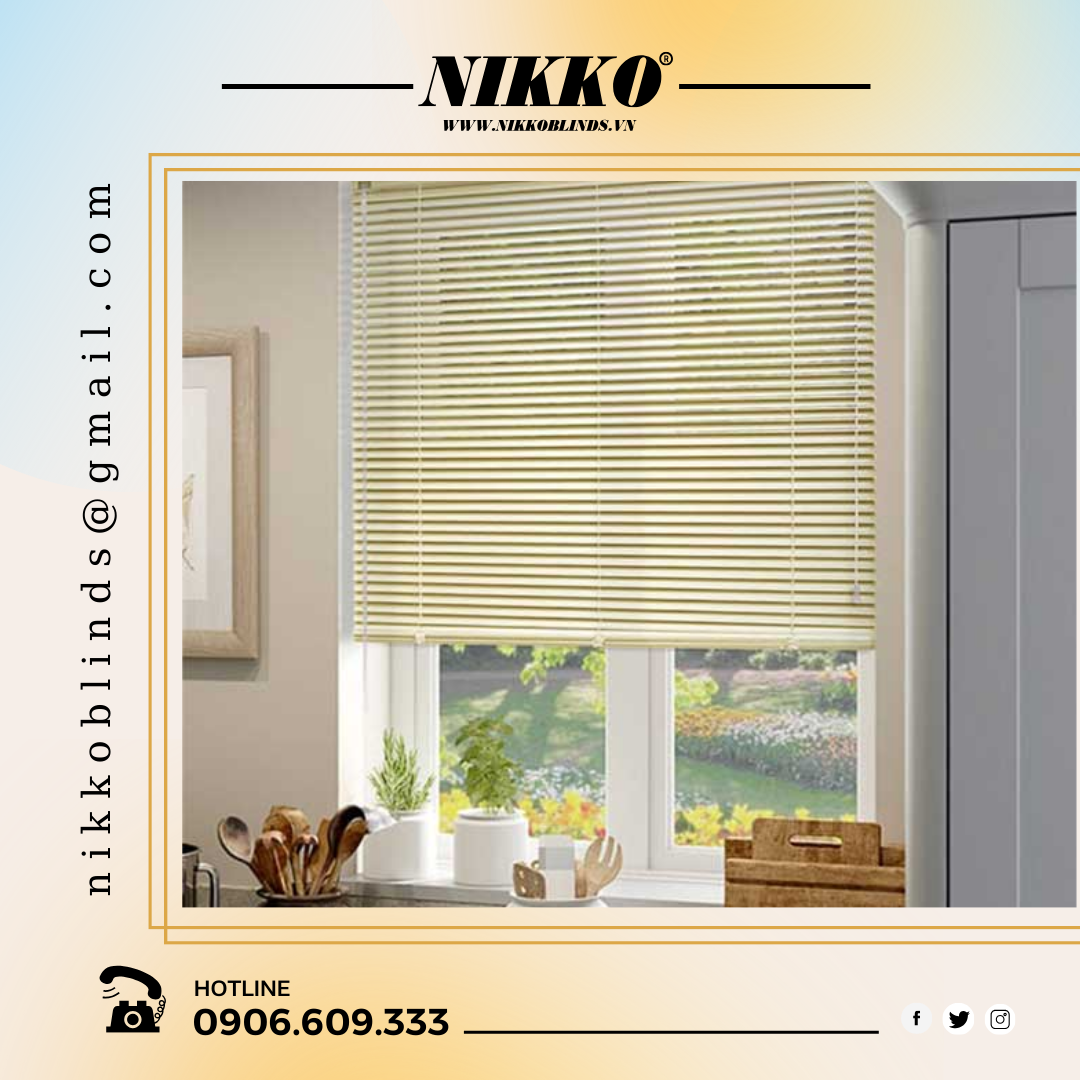 Rèm sáo nhôm màu be NIKKOBLINDS chinh phục khách hàng bởi thiết kế đơn giản, thanh lịch cùng mức giá phải chăng. Chất liệu nhôm cao cấp được sơn tĩnh điện giúp rèm bền bỉ, chống nắng nóng hiệu quả và dễ dàng vệ sinh. Nhờ khả năng xoay lật lá nhôm linh hoạt, bạn có thể điều chỉnh ánh sáng tự nhiên vào nhà theo ý muốn. Rèm sáo nhôm phù hợp lắp đặt cho nhiều không gian như văn phòng, nhà ở, trường học,... mang đến vẻ đẹp hiện đại và tiết kiệm chi phí.